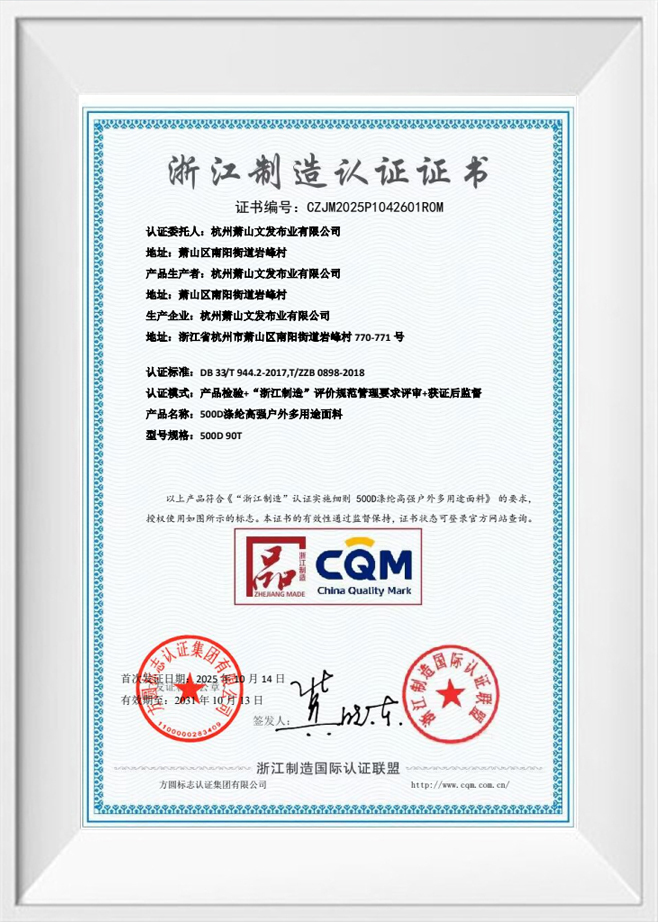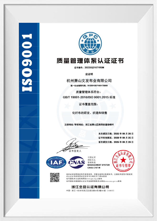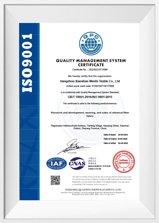 Poslujemo proizvodnim načinom razmišljanja: ako se tkanina ne može pouzdano izraditi na veliko, ne bi se trebala prodavati kao "program". Zato Wenfa naglašava sposobnost stabilne opskrbe i ponovljivu kontrolu procesa, a ne samo certifikaciju.